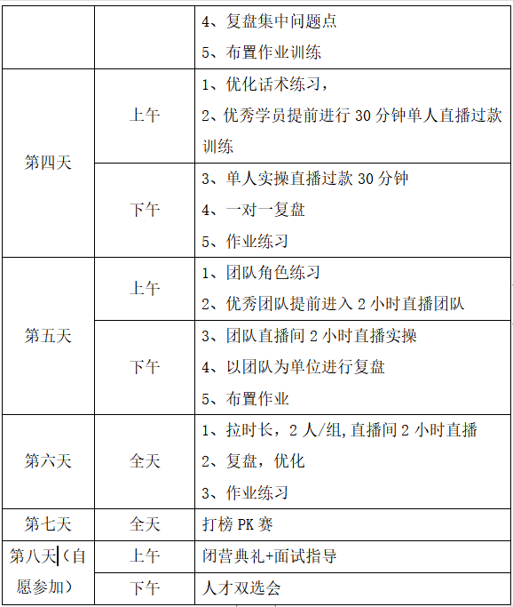 1、了解直播平台;2、人货场搭建;3、流量组成;4、直播间底层逻辑;5、平台道具玩法;6、直播带货流程;7、直播间排品;8、直播间考核标准;9、如何看直播间数据大屏;10、粉丝画像认知;11、直播间违禁词讲解;12、直播话术撰写;13、直播带货GMV