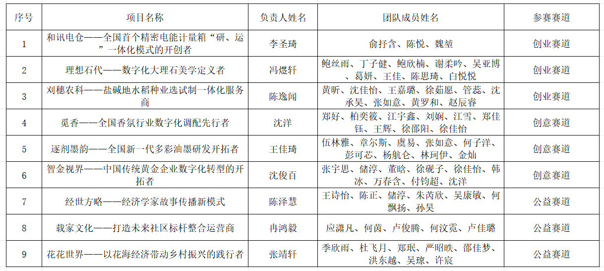 根据《关于举办第九届全国财经院校创新创业大赛校内选拔赛的通知》,疯av 组织开展了第九届全国财经院校创新创业大赛推荐选拔,由校外专家根据省赛名额,择优推荐9个项目参加第八届全国财经院校创新创业大赛,具体名单见附件(排名不分先后):