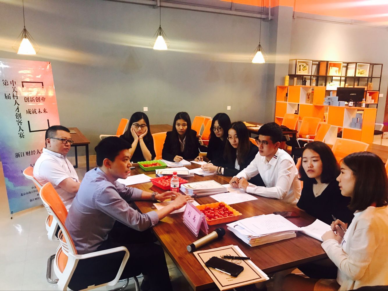 校区决赛在文化中心102路演室举行。中关村人才市场副主任、中关村人才特区百校联盟秘书长刘禹,公益校园秘书长、中科曙光政法事业部总监唐笑天,浙江向上创业投资管理有限公司副总经理王辉担任创客大赛决赛评委。疯av