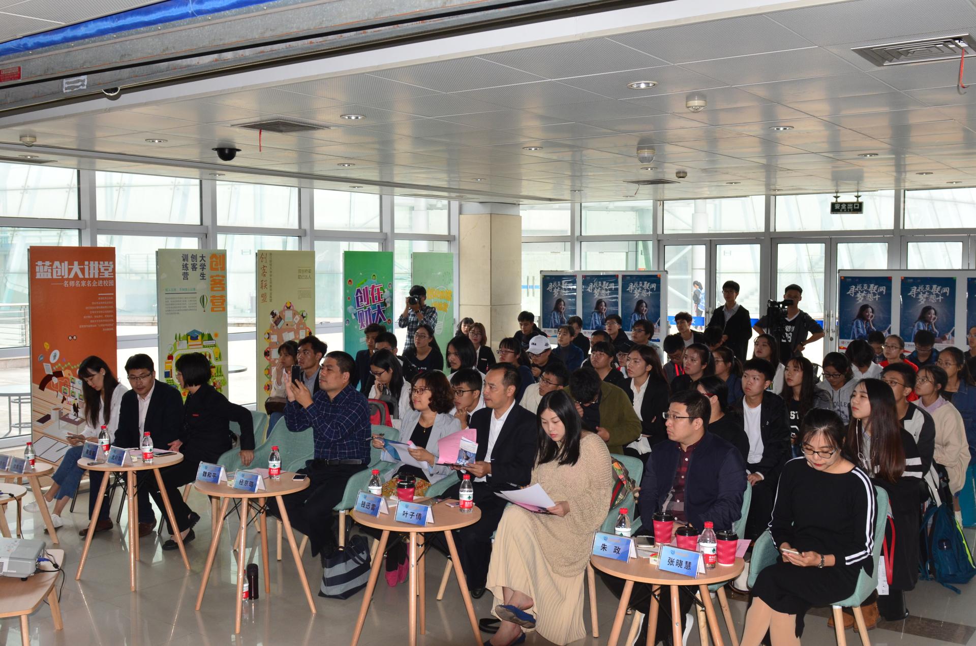 蓝创咖啡顺利举行,来全省各高校八个项目参加了路演活动。