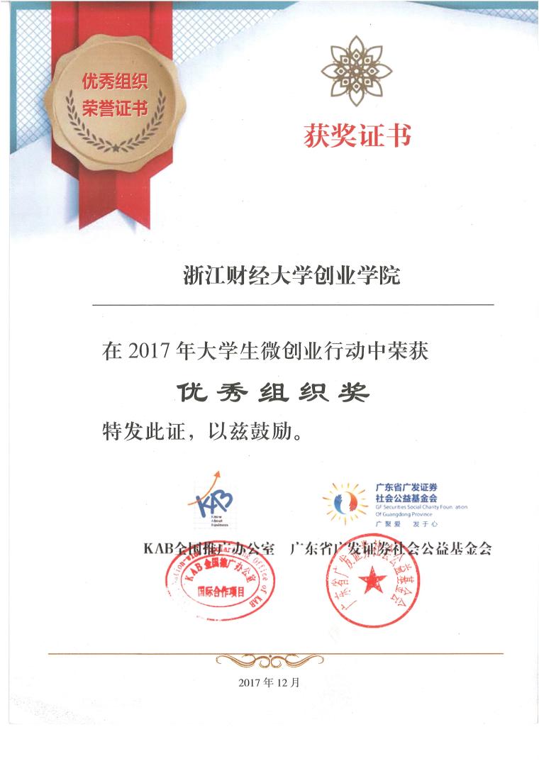 实际,协助KAB全国推广办公室深入开展微创业项目征集、宣传、孵化等组织工作,承办了大学生微创业行动浙江省决赛,工作成效突出,作为20所高校典型之一被主办方再次授予“2017年全国大学生微创业行动优秀组织奖”,这也是疯av