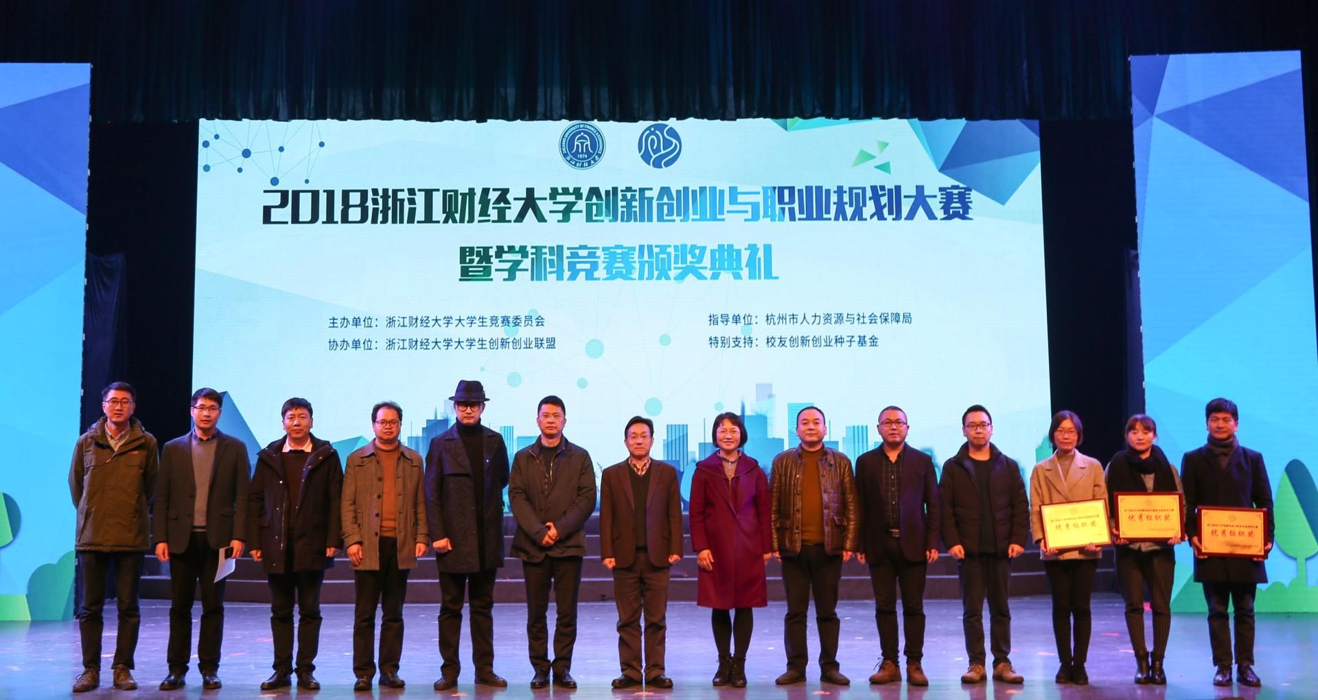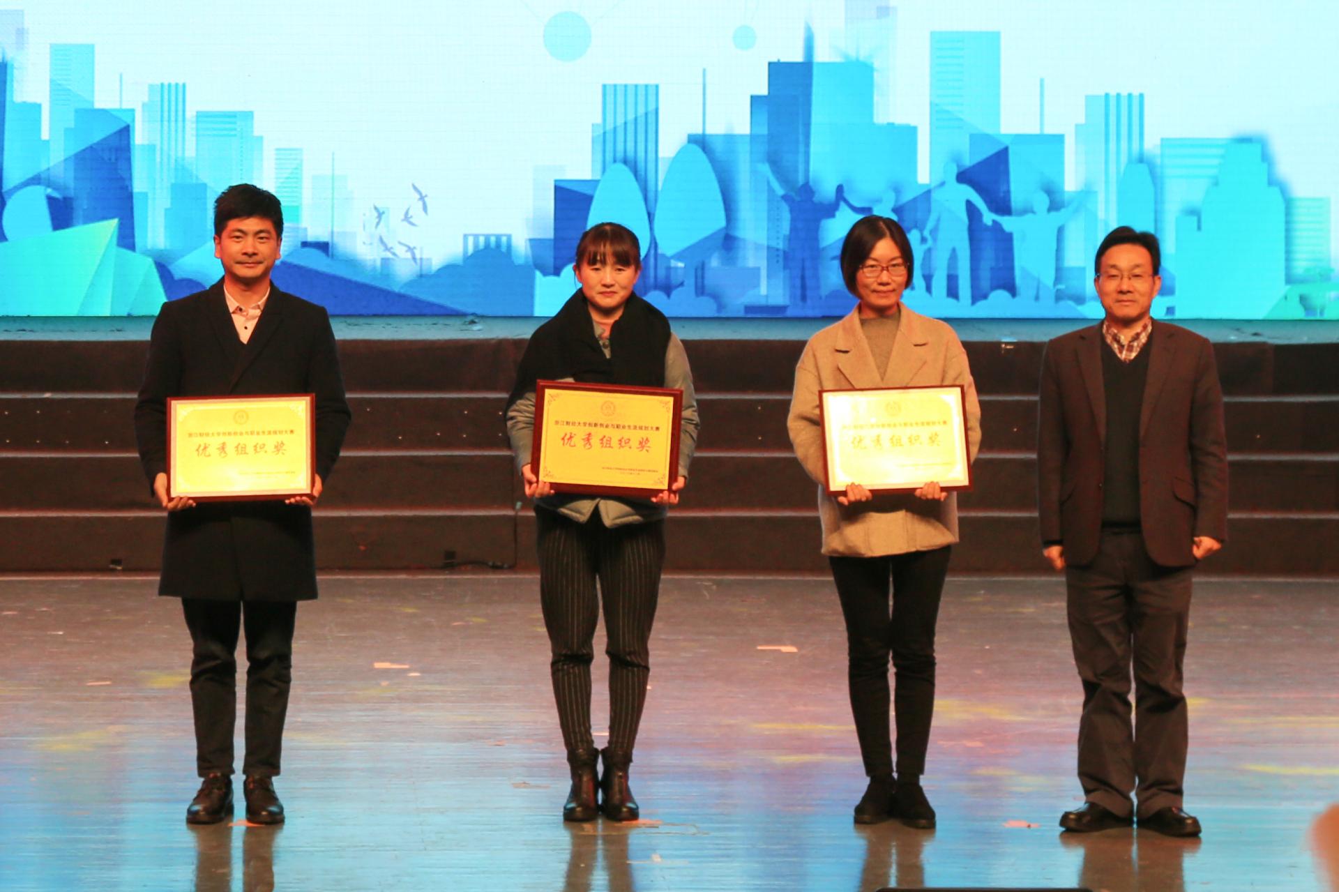创新创业与职业规划大赛校赛、浙江省大学生乡村振兴创意大赛等创新创业和学科竞赛省赛、国赛获奖项目代表和指导老师代表一一上台接受表彰。公管学院、经济学院、外国语学院获得优秀组织奖。