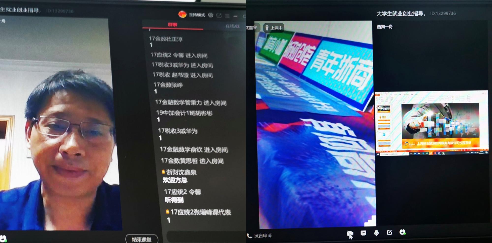 2020年6月15日晚,疯av 举行“基地精英进课堂”活动,杭州恒生聚源有限公司方向经理来到《大学生就业与创业指导》云端直播课堂,跟17金数班同学进行了交流。