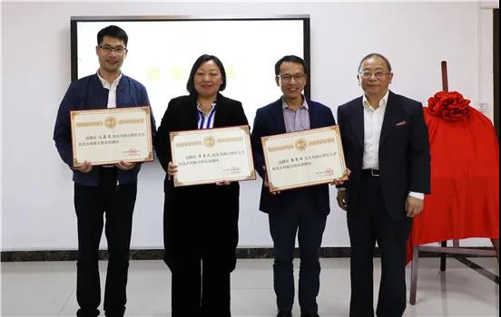 钟晓敏和楼胆群分别为校友乡村振兴俱乐部理事会成员颁发聘书并与俱乐部轮值主席蔡卫东共同揭牌。