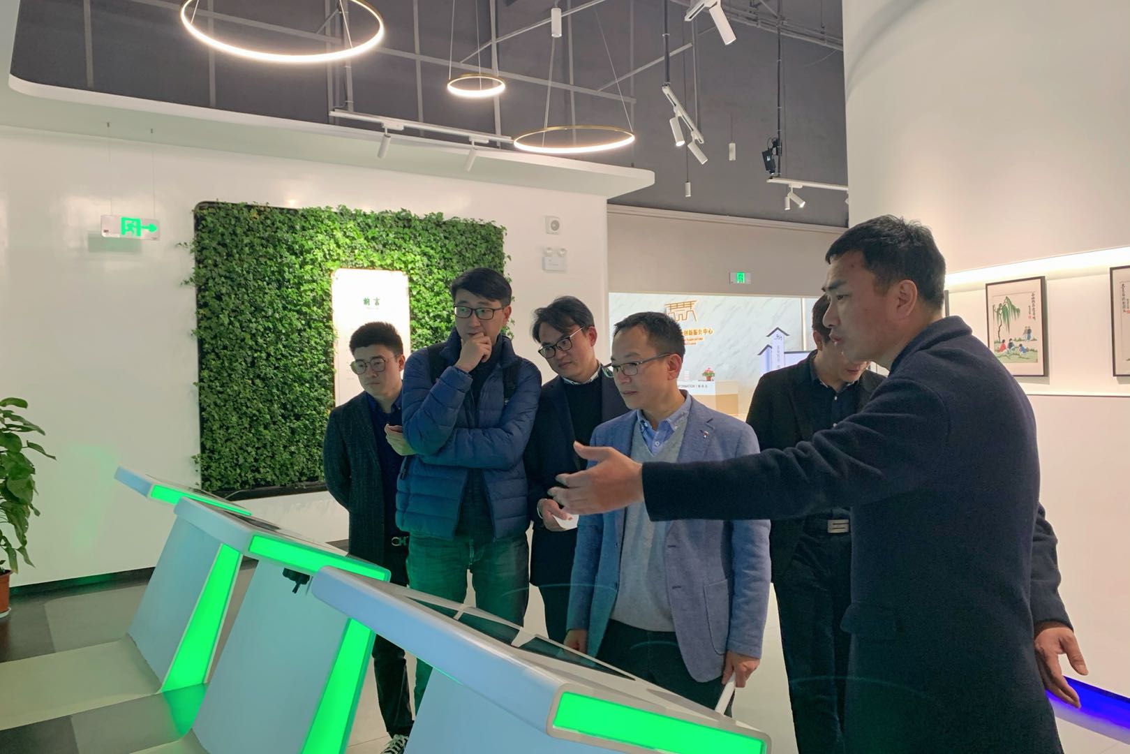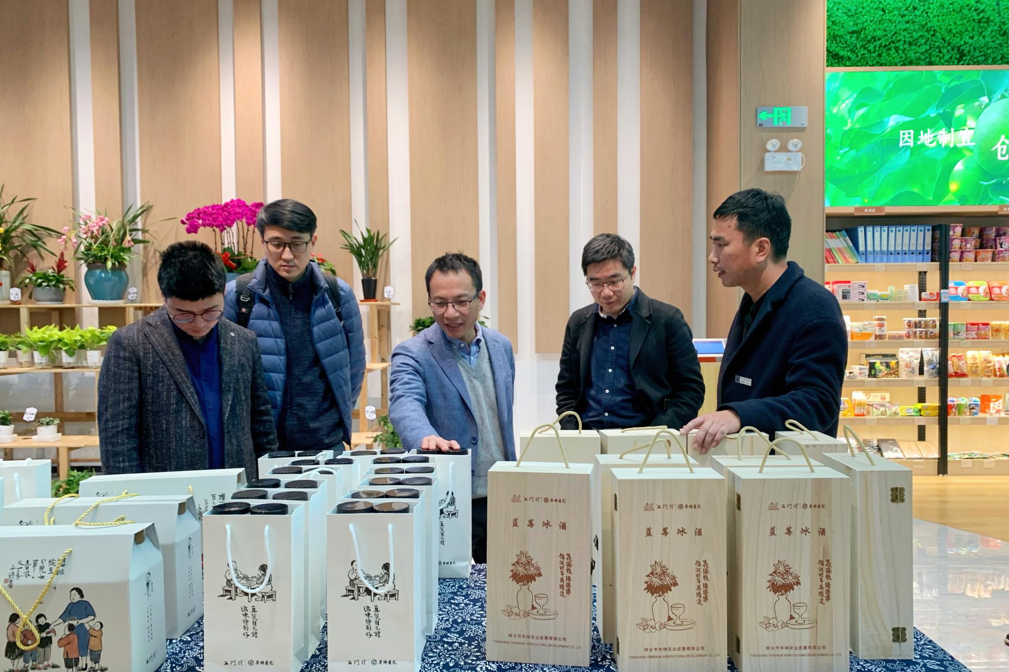 在工作人员带领下,全体成员先后参观了桐乡市现代农业创新服务中心、农特产品展销厅以及农创客孵化空间。在“悠游桐乡”互动体验厅,通过模型演示、VR展示、答题互动等形式,体会了丰子恺故乡桐乡的美丽风光。在桐乡特色农产品展销厅,认识了“丰坤有礼”和“一湾好”品牌下的杂粮、果干等多种特色农产品。在创客空间,参观了现代化的办公设施和正在建设的玻璃花房。通过实地参观考察,大家对于丰坤的商业化农业综合服务模式有了更进一步了解,对于高校如何全面助推乡村振兴有了更深度思考。
