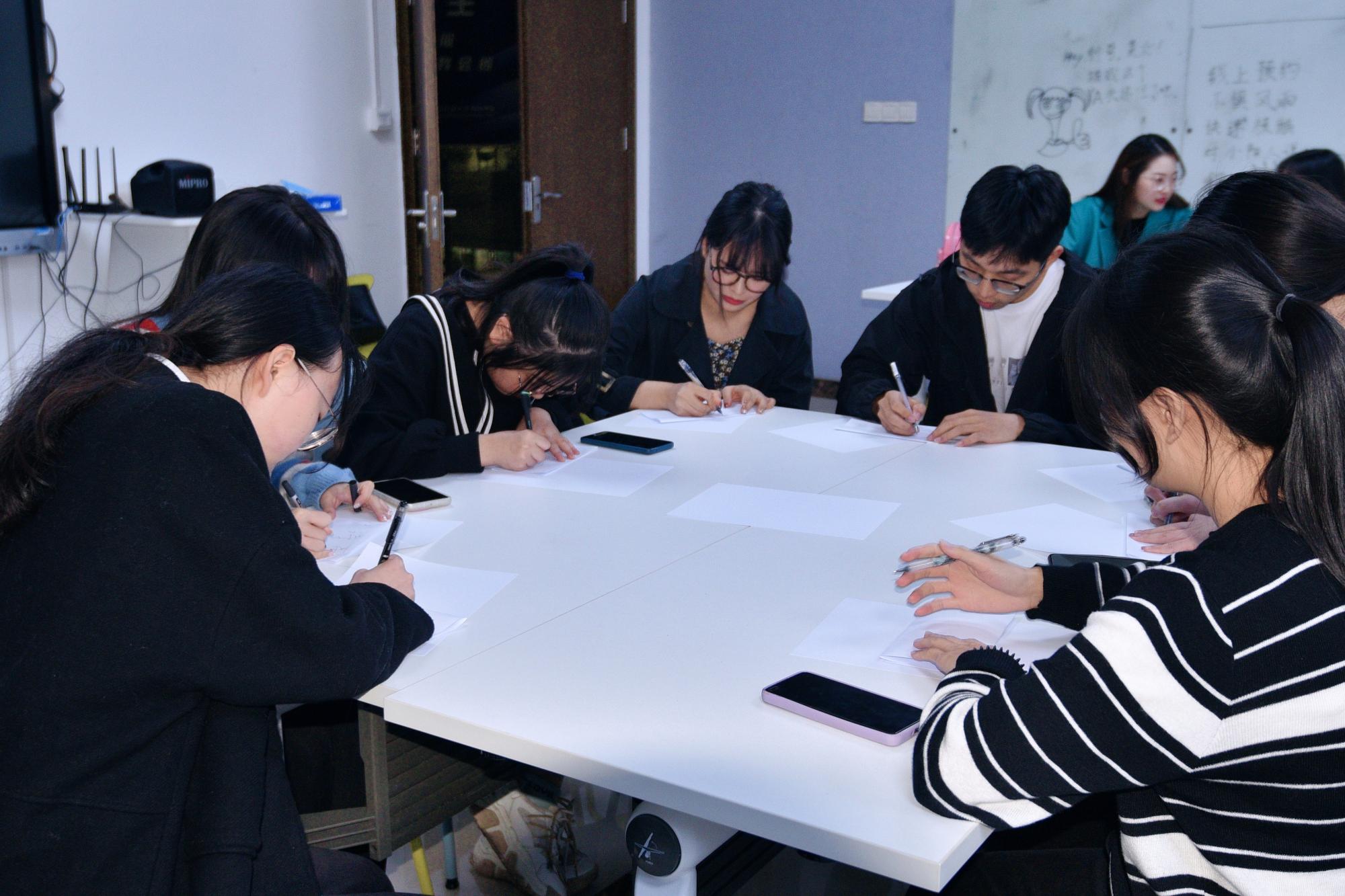 模拟面试环节由学生自我介绍、情景化无领导小组讨论、评委点评三个部分组成。面试过程中面试官从择业目的、职业意向、核心竞争力等方面对面试者进行模拟面试,并结合面试中出现的问题提出了指导性建议。