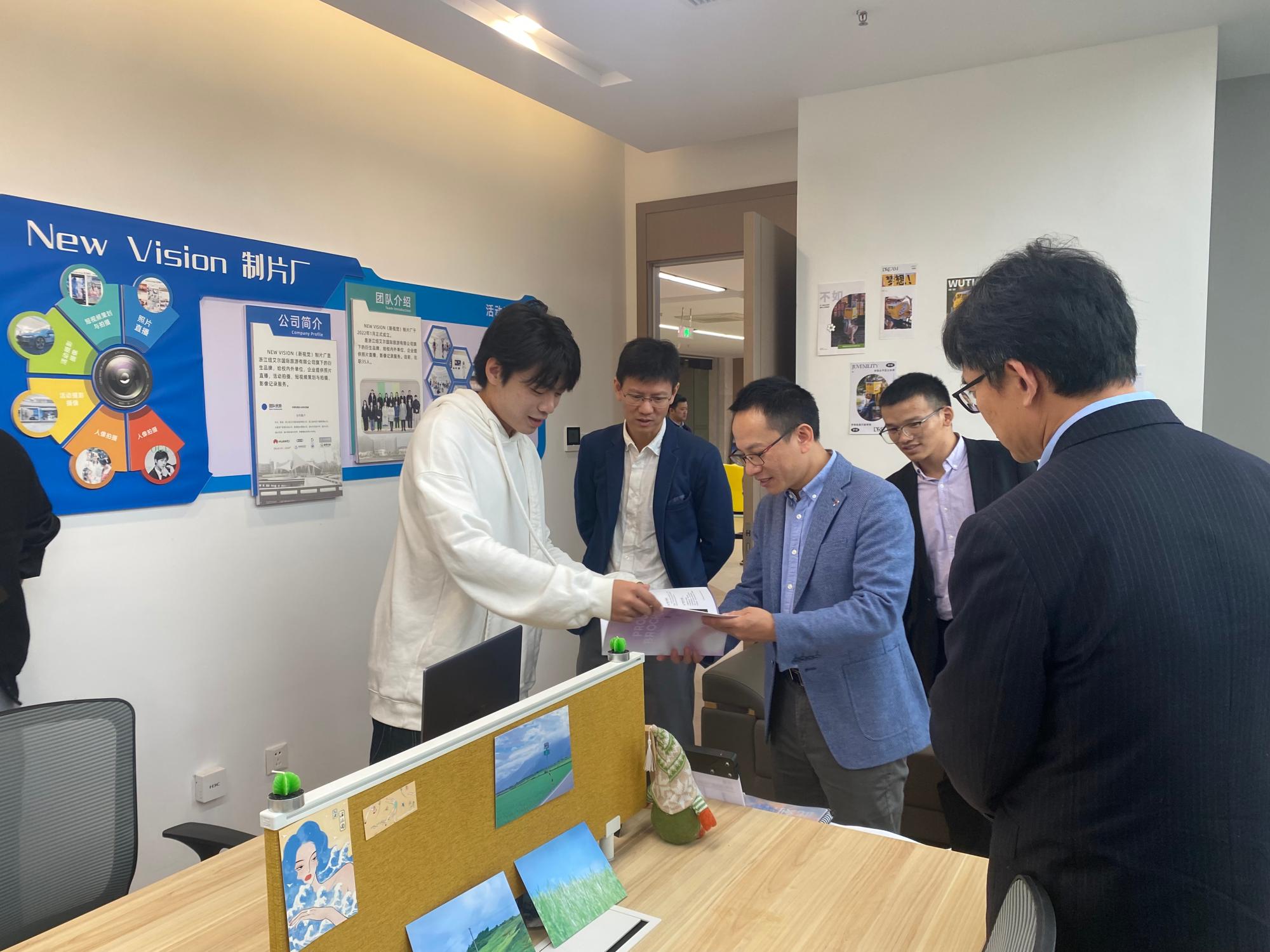一行参观了温大创业空间,走访了融艺优品、创源科技、New Vision制片厂等创业项目,深入了解了大学生创业园管理及项目孵化情况。