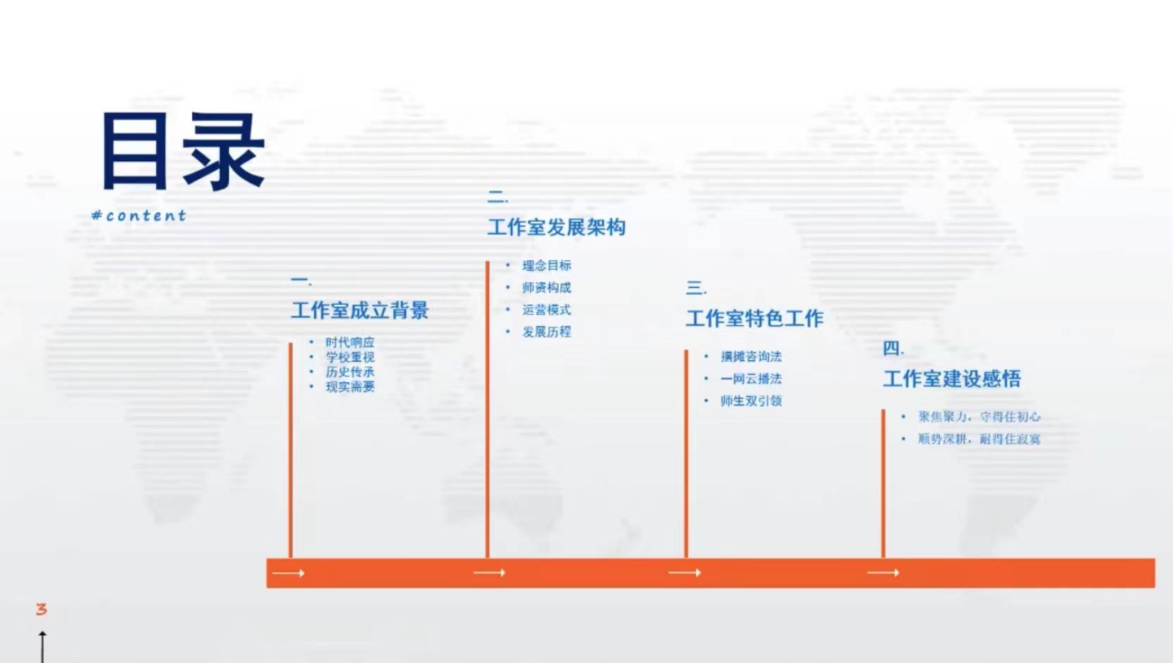 的重视和发展。陈老师从工作室的成立背景,工作室发展架构,工作室特色工作和工作室的建设感悟四个方面讲述了如何更好地发展职业规划教育和建设职业生涯工作室。