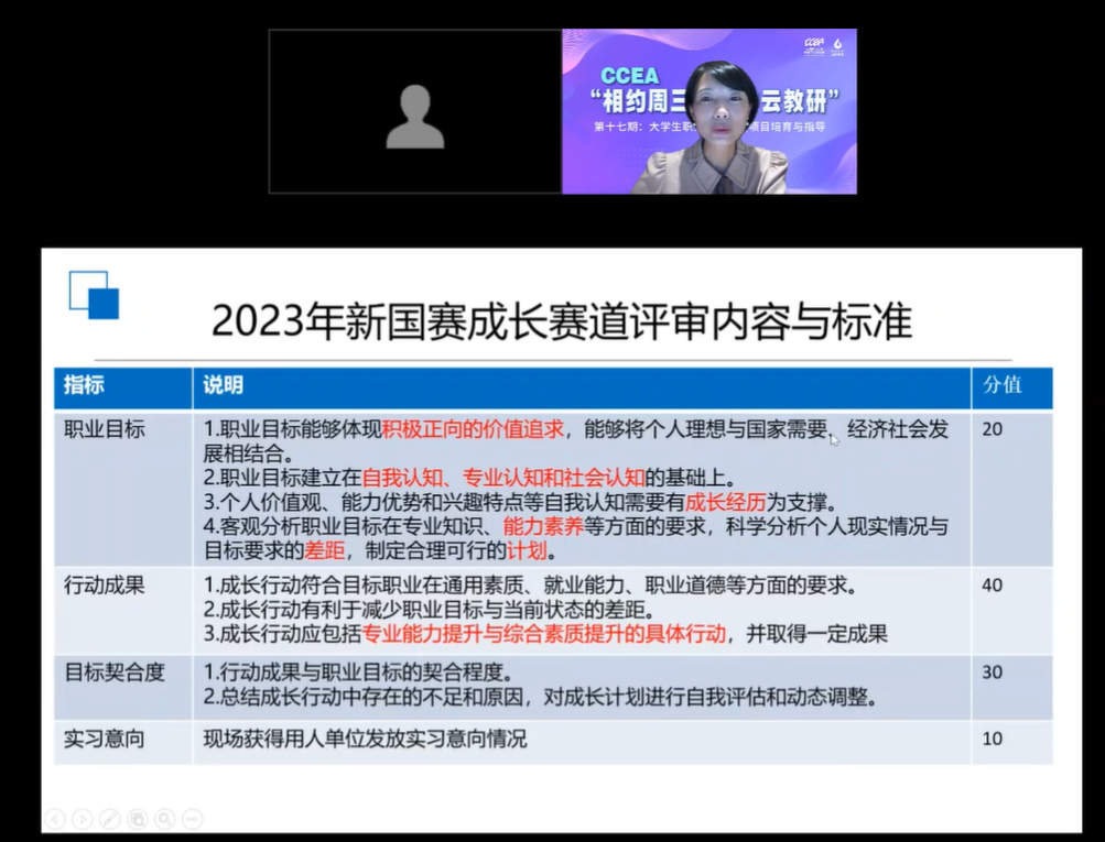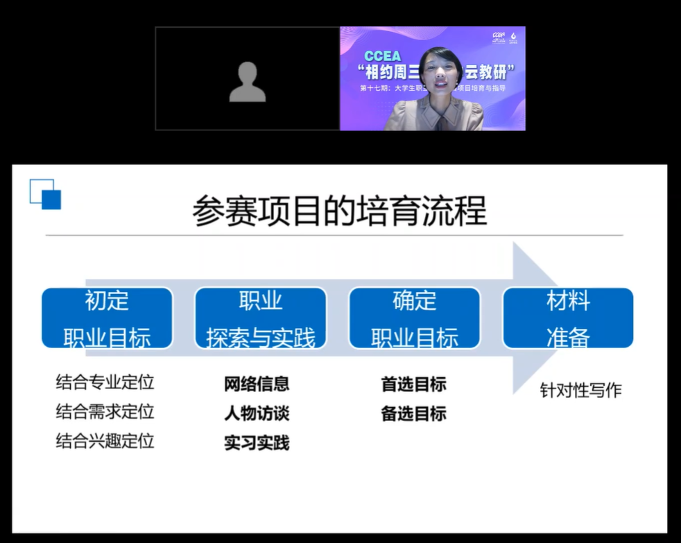 承办的CCEA“相约周三·空中云教研”第十七期——大学生职业规划大赛项目培育与指导在线上成功举办。福州大学副教授阮娟受邀出席讲座。
