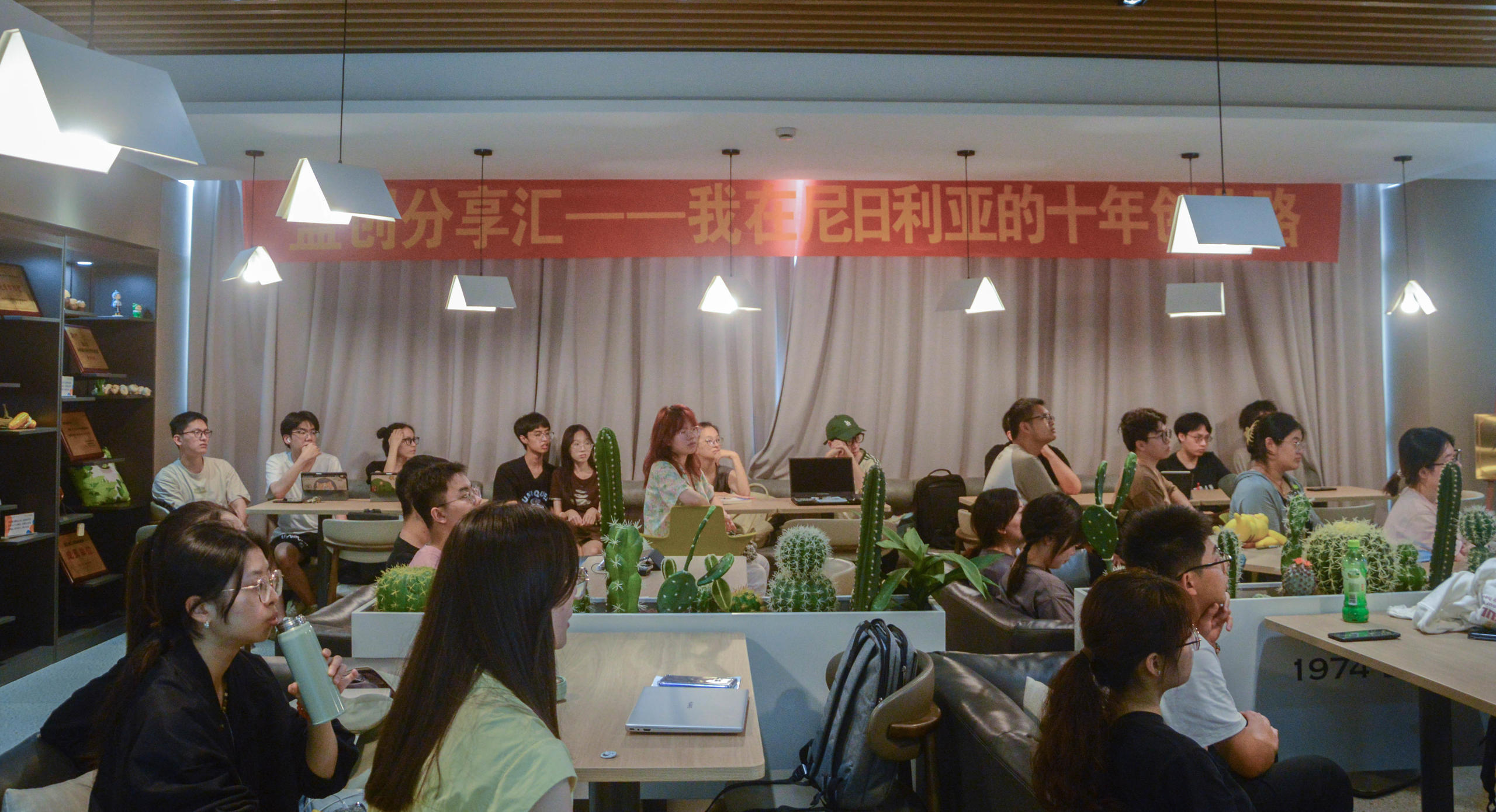 主办,绘梦蓝创空间承办的创业沙龙“蓝创分享汇——我在尼日利亚的十年创业路”在空间创咖举行。浙商国际合作商会海外特邀理事,尼日利亚龙腾家具工贸有限公司董事长、龙腾矿业董事长龙跃辉受邀与同学们分享自己的创业历程与经验心得。