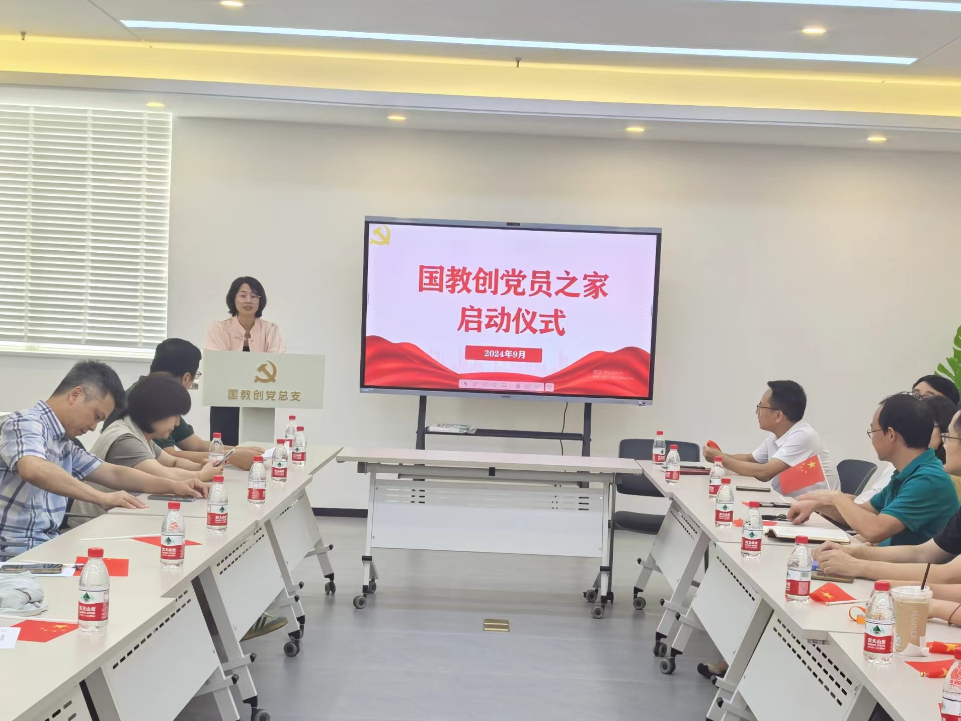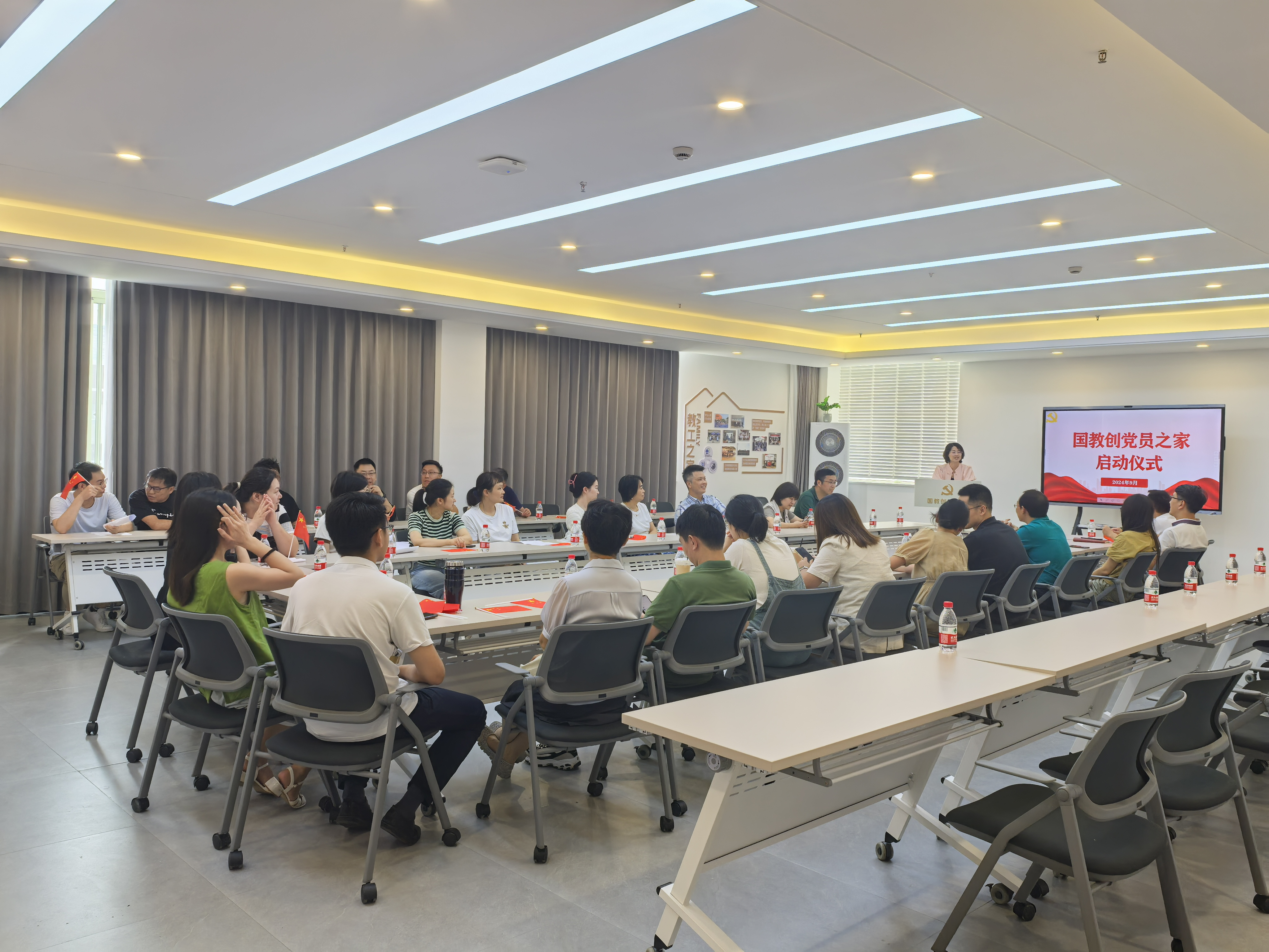 9月30日,国教创党员之家启动仪式暨秋季师德专题教育活动在E519室举行,国教创教职工出席活动,启动仪式由党总支书记黄金娟主持。