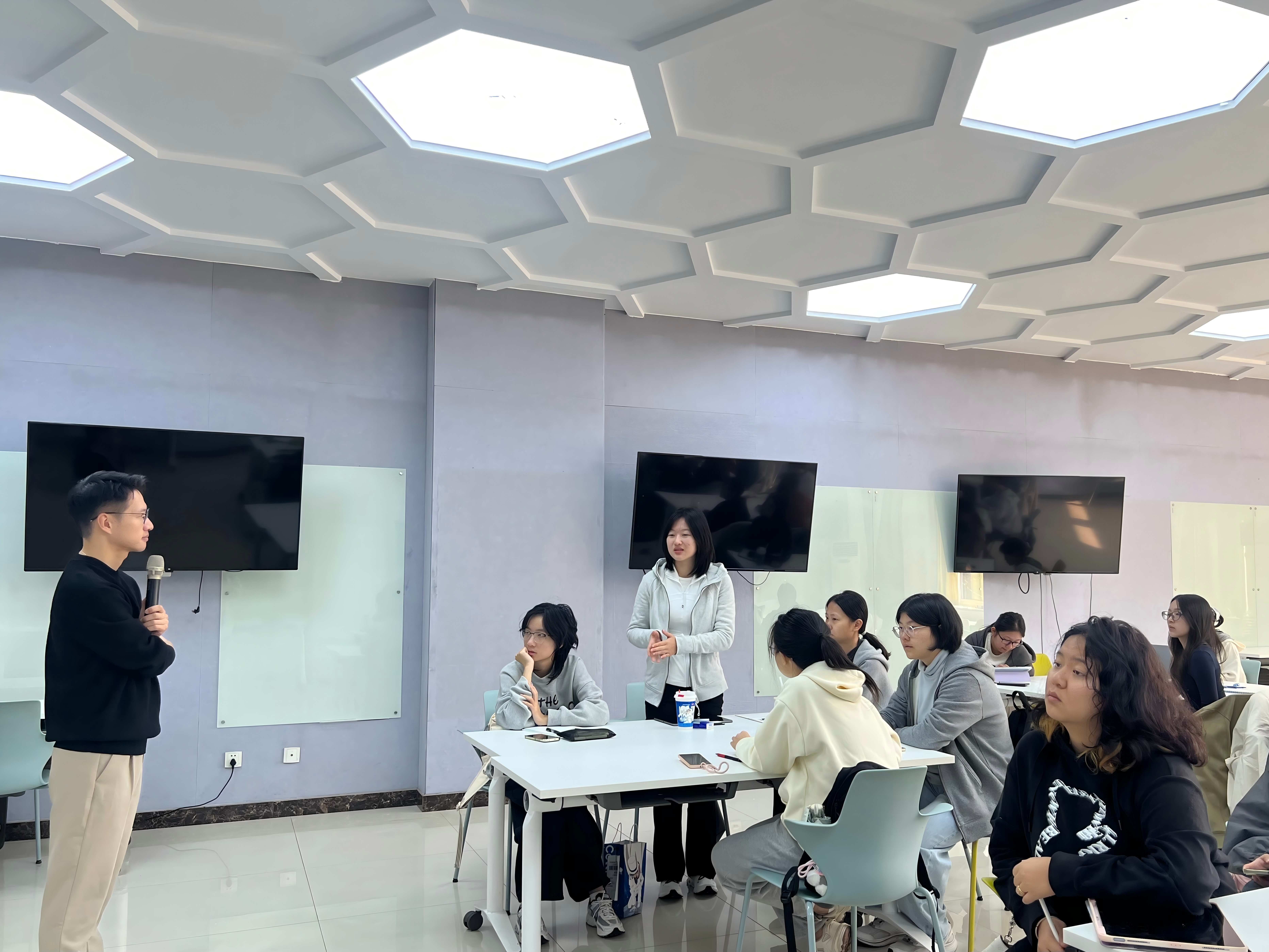 竞赛成绩三方面系统介绍了创新创业赛事体系,并结合“智扣未来”等典型案例,详解项目PPT制作要领。在徐讲师的带领下,同学们初步尝试了作品设计与展示。徐讲师建议,可从申报国创项目起步,积累经验后再根据专长加入重点项目团队,实现循序渐进的成长路径。