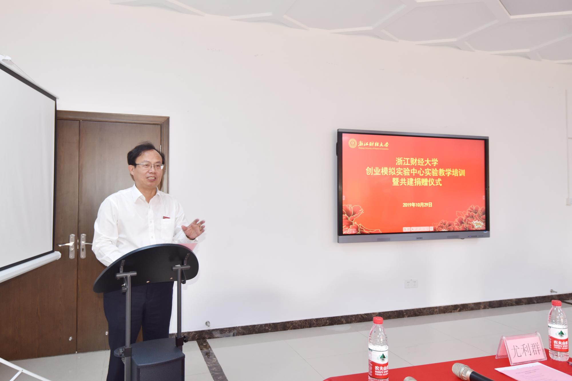 院长尤利群主持。仪式开始,尤院长就实验中心的建设情况作了总体介绍,随后,校党委黄建新副书记对捐赠仪式进行致辞,黄书记首先代表疯av