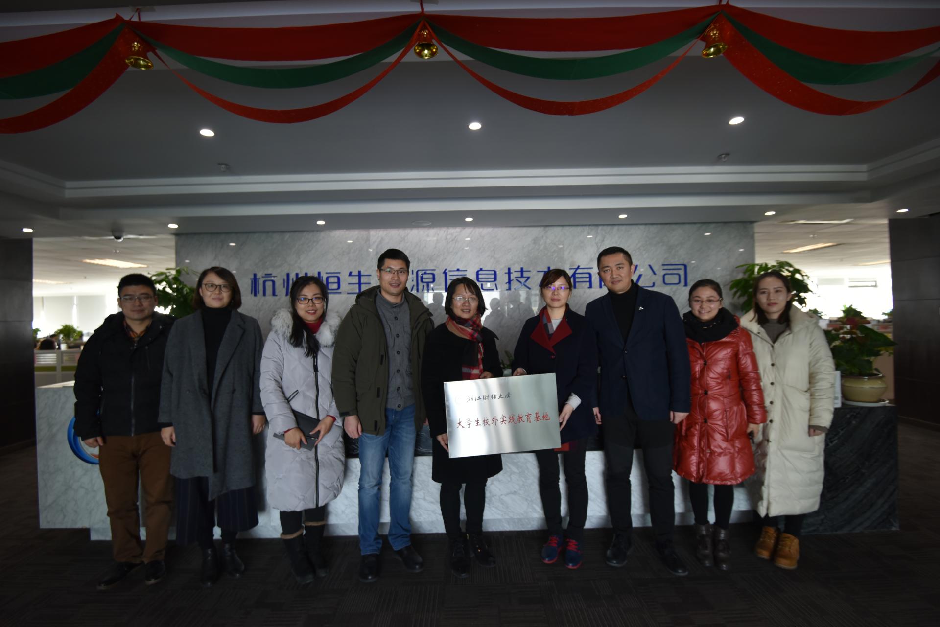 与杭州恒生聚源信息技术有限公司合作共建大学生校外实践教育基地的揭牌仪式在杭州恒生聚源信息技术有限公司举行。杭州恒生聚源信息技术有限公司总经理姚红琼、副经理蒋涛、恒生电子股份有限公司公共事务部副经理陈伟、高级公共事务专员林佳佳、疯av