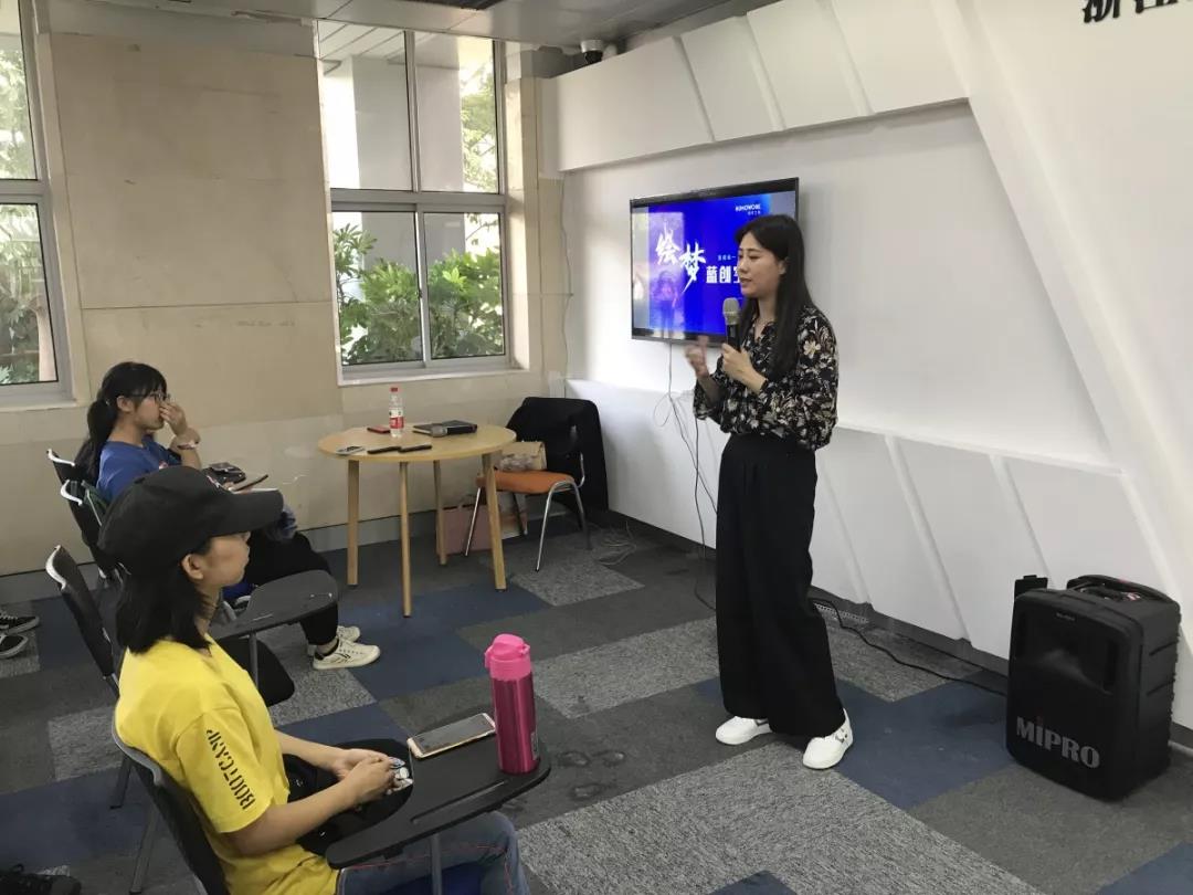 宣讲会即将开始前,主讲人为大家播放了一段杭州绘自传网络科技有限公司的企业宣传片,让同学们了解到本次活动方的疯av和服务输出,随后便是本次活动的宣讲人超校联盟的创业导师、绘梦蓝创空间的负责人俞恺灵进行宣讲。