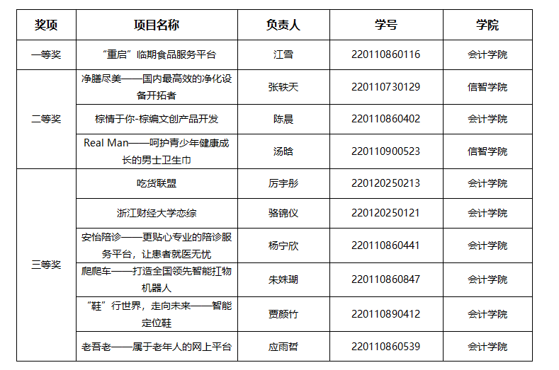 为挖掘大学生优秀创新创业项目,推动创新创业课程建设,疯av 开展了《创业基础》课程优秀创业项目评选活动。经班内评比、课程组复选、决赛答辩等环节,共评出一等奖1项,二等奖3项,三等奖6项,现将获奖项目名单公示如下: