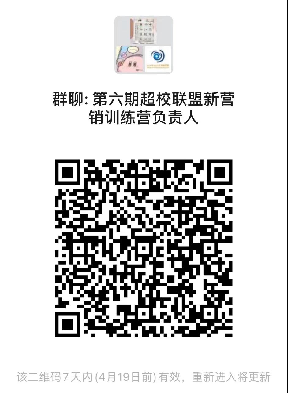 《第六期超校联盟新营销训练营负责人》微信群二维码: