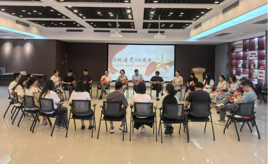 党群服务中心隆重举行庆祝建党104周年暨"崇实创新 感恩奋进"主题党日活动,国教创党总支全体党员、入党积极分子参加。