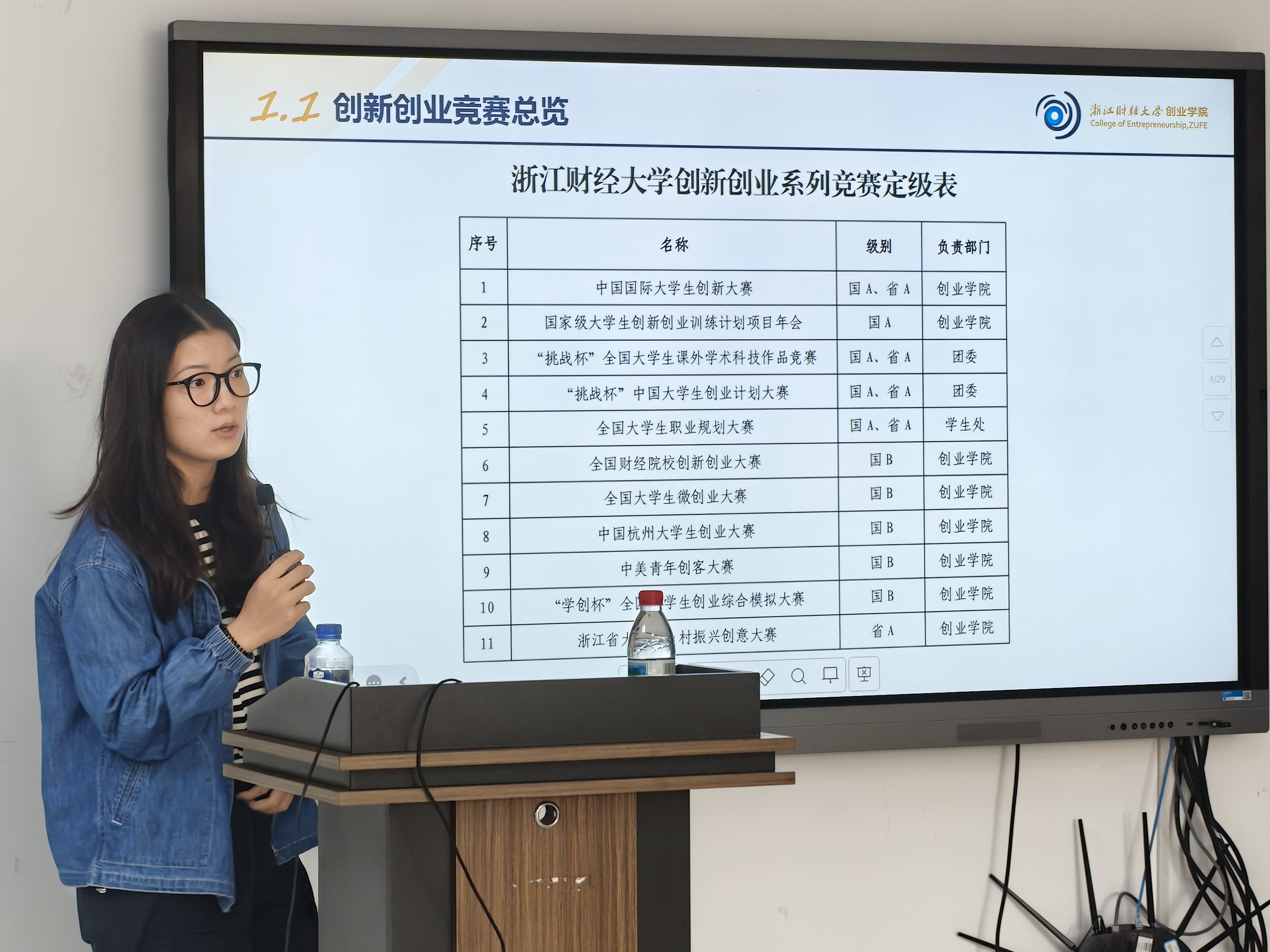 竞赛成绩三方面系统介绍了创新创业赛事体系,并结合“智扣未来”等典型案例,详解项目PPT制作要领。在徐讲师的带领下,同学们初步尝试了作品设计与展示。徐讲师建议,可从申报国创项目起步,积累经验后再根据专长加入重点项目团队,实现循序渐进的成长路径。