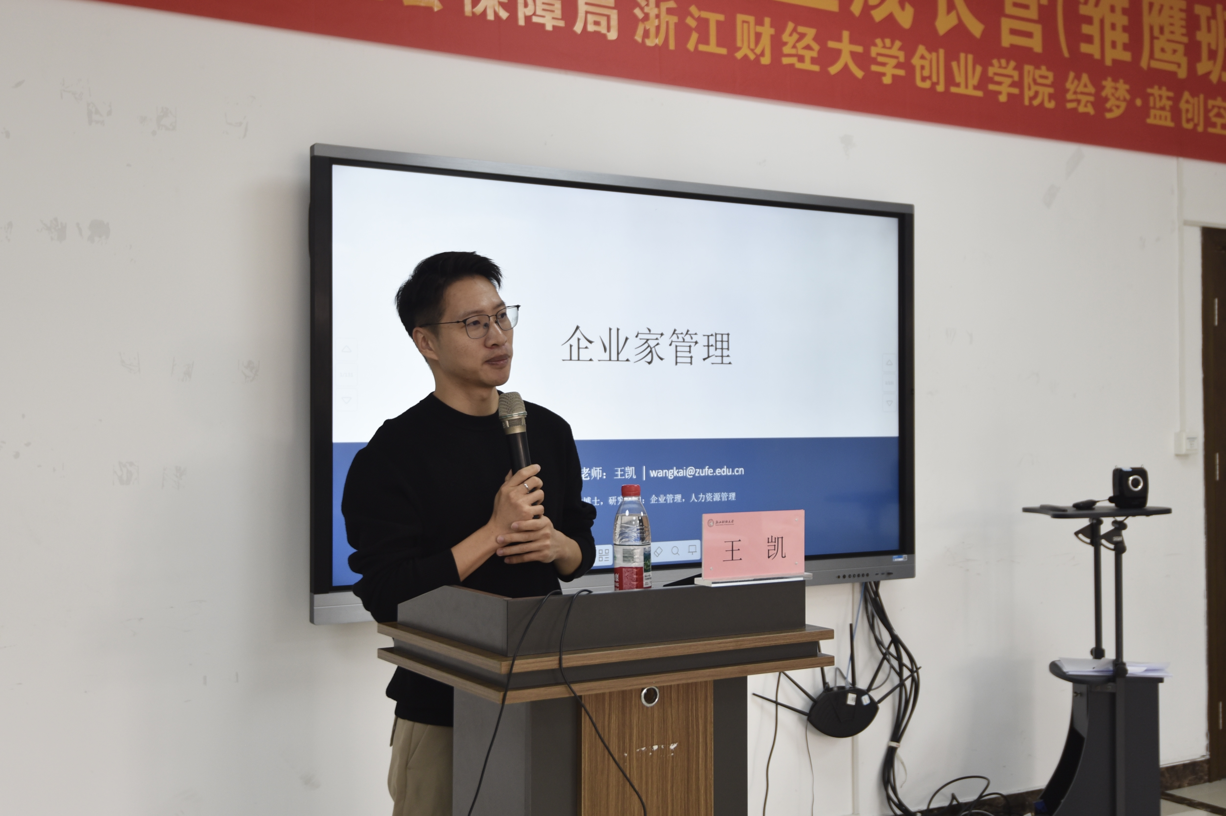 导师王凯从企业家管理的概念与特征、创业型组织的结构与文化要素、创业管理的核心职能与成长挑战、企业家精神的制度化途径四个方面,阐释了企业家管理的核心内涵,并强调“以创新代替控制,以灵活应对变化”,为学生们梳理了管理企业的要素,旨在培养学生的企业家思维,并根据当代企业案例,为创业方向提出指导。