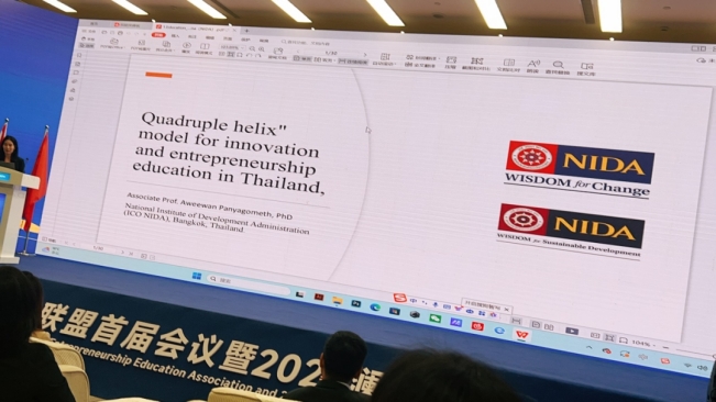 泰国国家发展管理研究生院国际学院副院长AWEEWAN PANYAGOMETH发表了《加强中泰研究与交流项目合作》的主旨演讲。她与在座嘉宾分享了疫情期间泰国政府推出的一个项目,就是发挥大学的集成作用,招募学生了解当地区域的民众的需求,根据大数据有针对性地开发产品,从而推动当地经济的发展。
