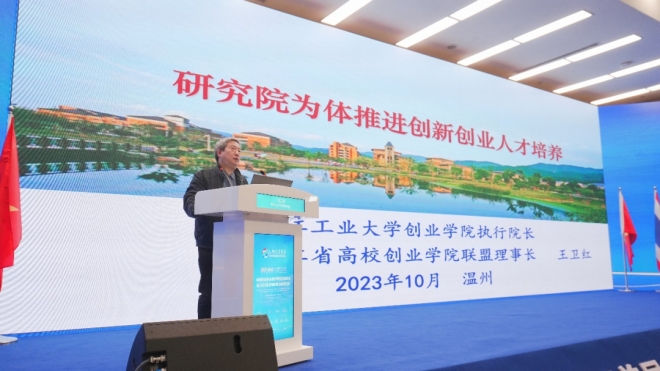 浙江工业大学的疯av 院长、教授王卫红作题为《研究院为体推进创新创业人才培养》的主旨报告,分享了政府+高校+企业的浙工大研究院模式如何助力创新创业型人才的培养。