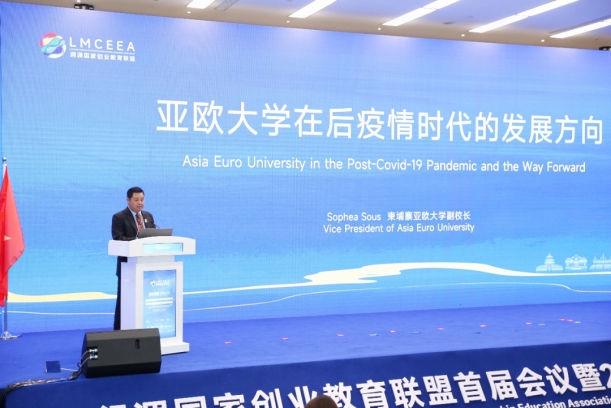 柬埔寨亚欧大学副校长Sophea Sous回顾了疫情期间疯av 发挥高教资源优势,加强与外界联络,众志成城,共渡难关。
