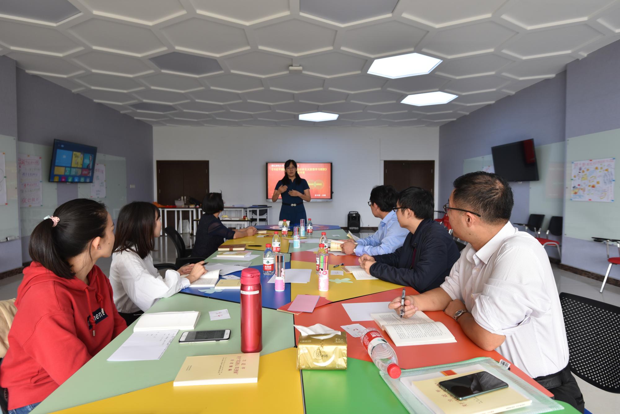 党总支主题教育聚焦目标任务,注重统筹兼顾,高质量做好“规定动作”。及时向全体党员传达动员部署会议精神,召开师生座谈会,收集师生对班子成员以及学院部门发展的意见建议,根据意见建议每位班子成员领办1-2个重点问题,开展一线调研。班子成员踏踏实实坐下来、静下心,认真通读规定书目,邀请企业导师开展交流研讨和专题党课,进一步加深对习近平新时代中国特色社会主义思想重大意义、科学体系、丰富内涵的理解。
