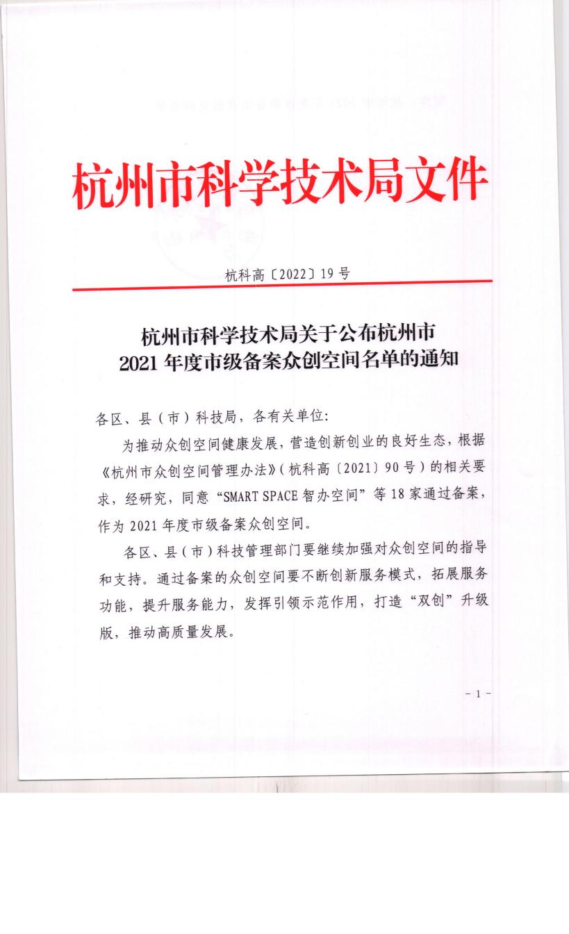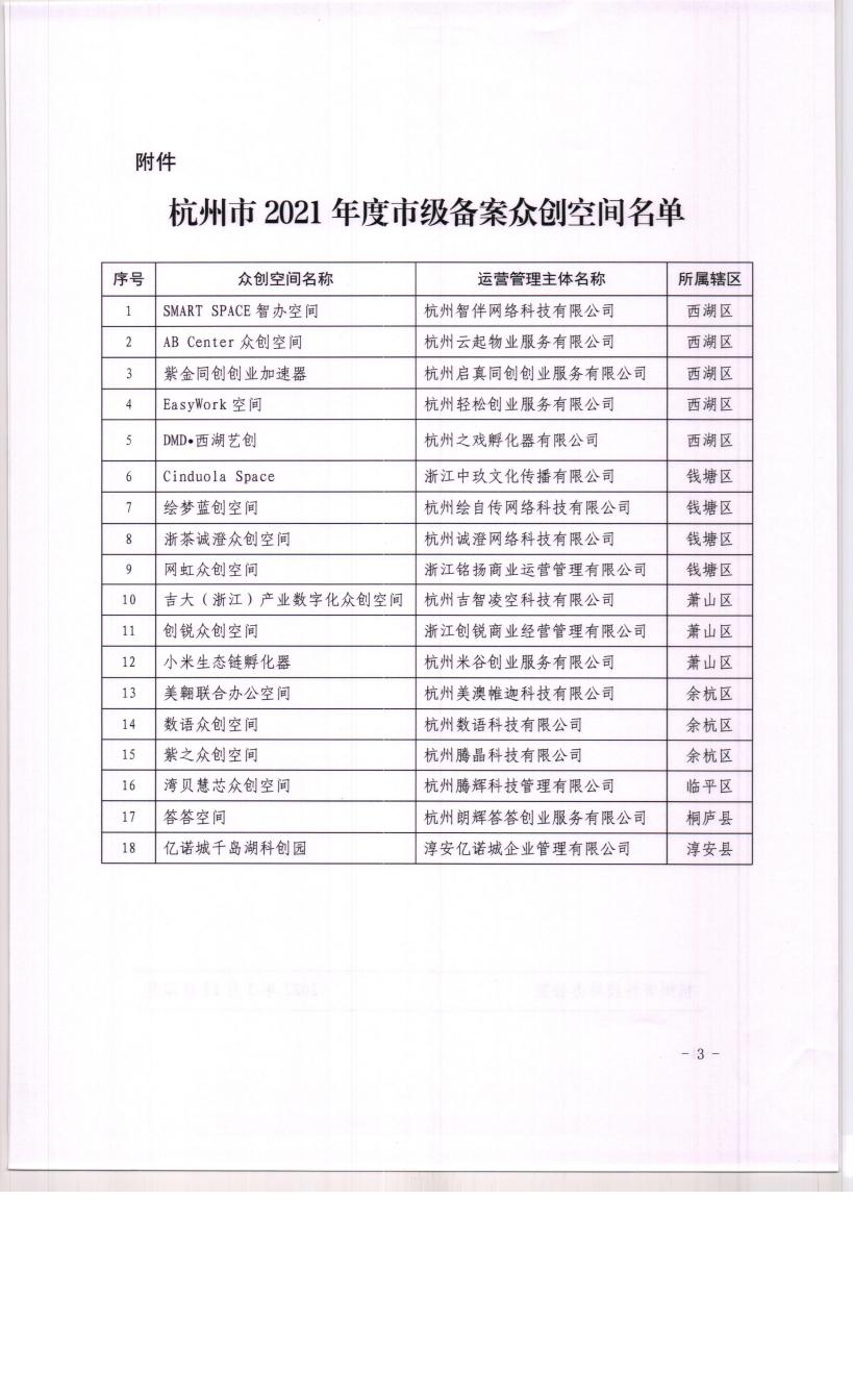 联合杭州绘自传网络科技有限公司共同建设的绘梦•蓝创空间入选2021年度杭州市众创空间。