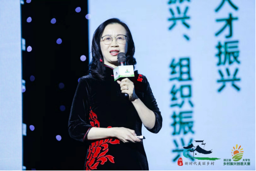 在总结环节,大赛秘书长魏遐对本次大赛做了全面总结:从全省各高校243个团队中遴选出的40个高校师生和青年设计师团队,帮助临海40个庭院华丽转身成“网红”。作为“政校企村”四位一体的高校服务乡村振兴的浙江模式再次在临海创意建设大赛得到了成功验证。详细介绍了分项赛的由来、经过和取得的成效。