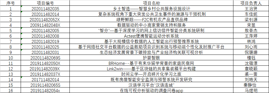 2021年上半年国家级大学生创新创业训练计划项目结题公示