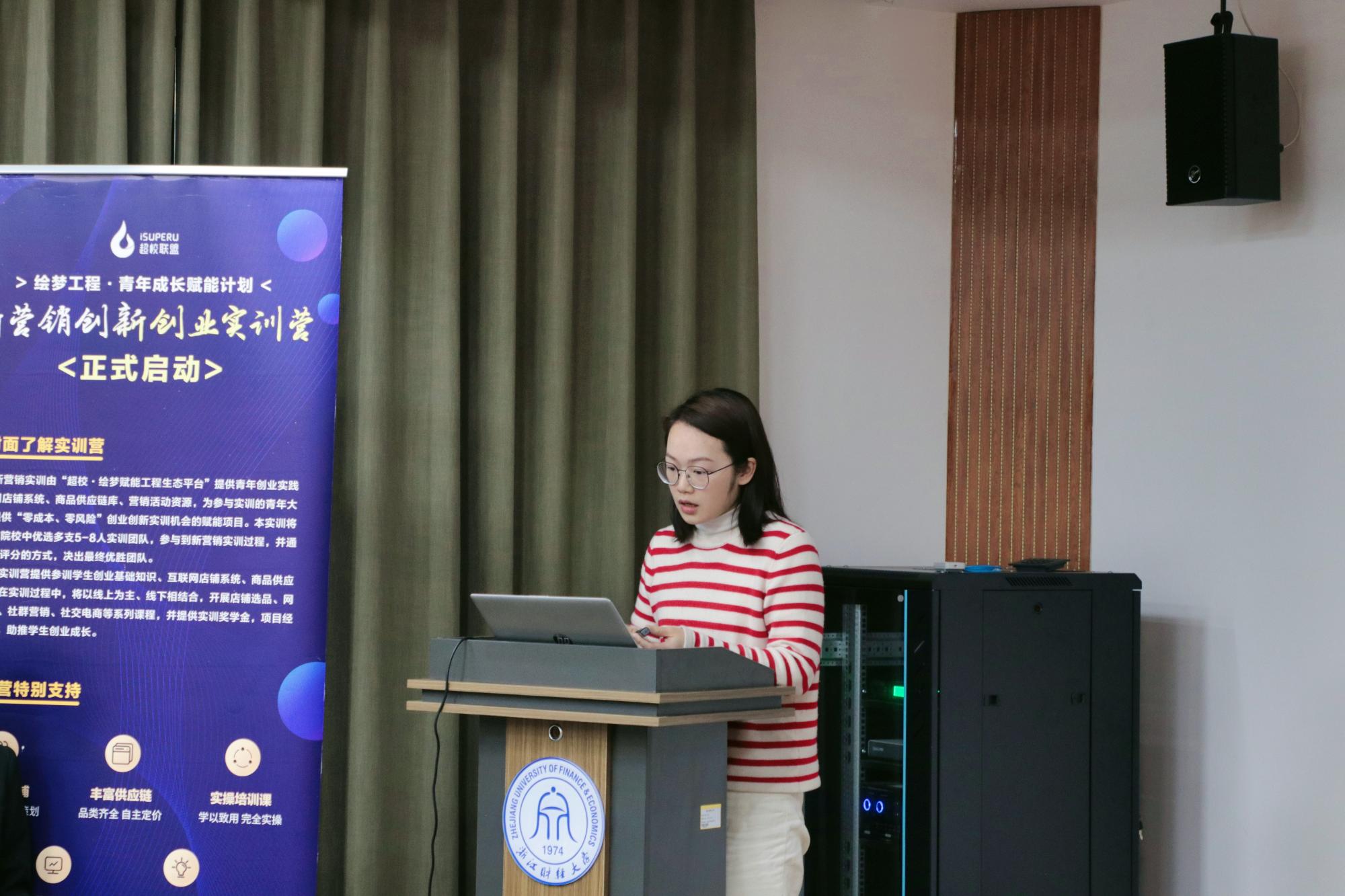 随后李娅女士从项目概述、项目价值收获期许和计划安排的角度出发,通过与在场同学及线上同学的交流与互动,以敢于脱离局限思维的独特角度对新营销创业实训项目作了具体介绍。