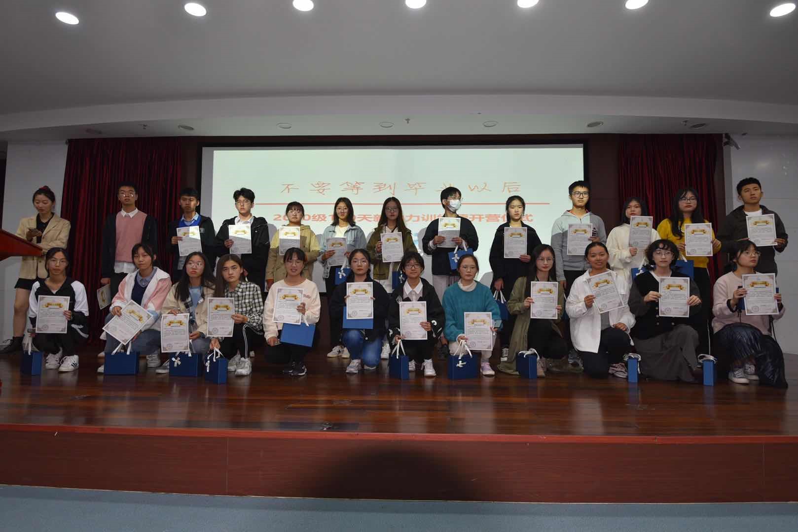 学生上台依次领取了自己的证书和新动力训练营精心准备的新生大礼包。大礼包中包括书籍《不要等到毕业以后》、绘有浙财风光的明信片、笔记本等,这是训练营为新成员们准备的第一份礼物。