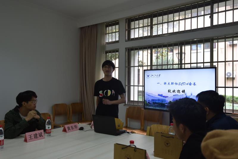会长黄东华对浙大职协SCDA进行了详细深入的介绍。会长介绍了协会寓意放眼美好未来的logo,协会的口号(“your future, we care”),组织架构,以及令人印象深刻的三大协会文化——服务文化、精英文化以及家文化。